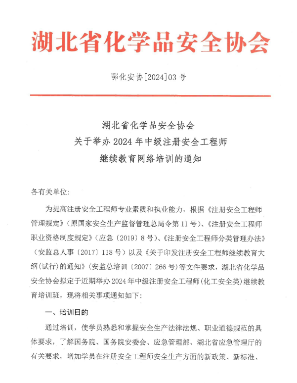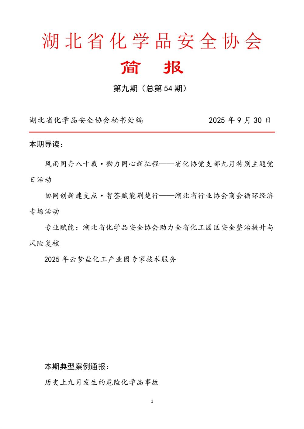 湖北省化學品安全協會 簡 報 第九期(總第54期)